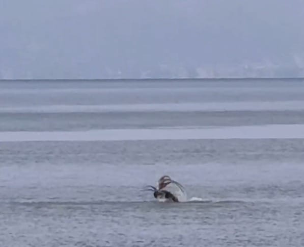 İzmir’in Çeşme ilçesinde bulunan sahilde, şaşırtıcı bir olay meydana geldi. Çeşme açıklarında, denizde bir fok balığı ahtapot avladı. Ahtapot, fok balığına av olmamak için direnmeye çalıştı ancak başarılı olamadı.