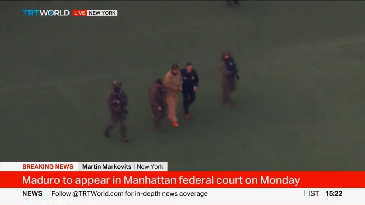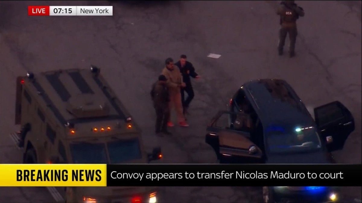 Eşiyle birlikte helikoptere bindirilen Maduro’nun, helikopterin Güney New York Eyalet Mahkemesi’ne doğru yol alarak ABD kolluk kuvvetlerine teslim edilmesi bekleniyor.